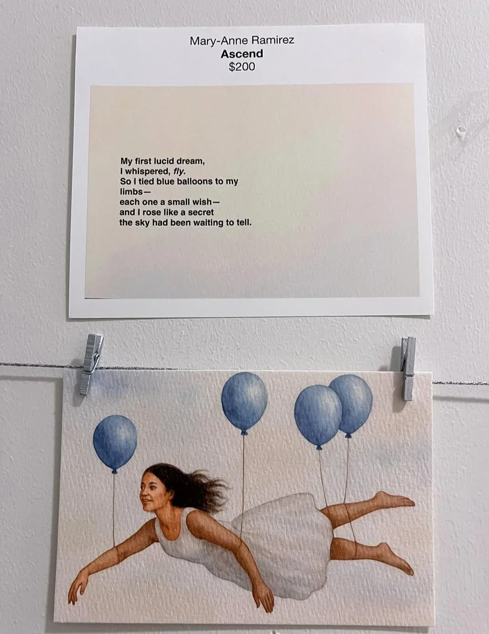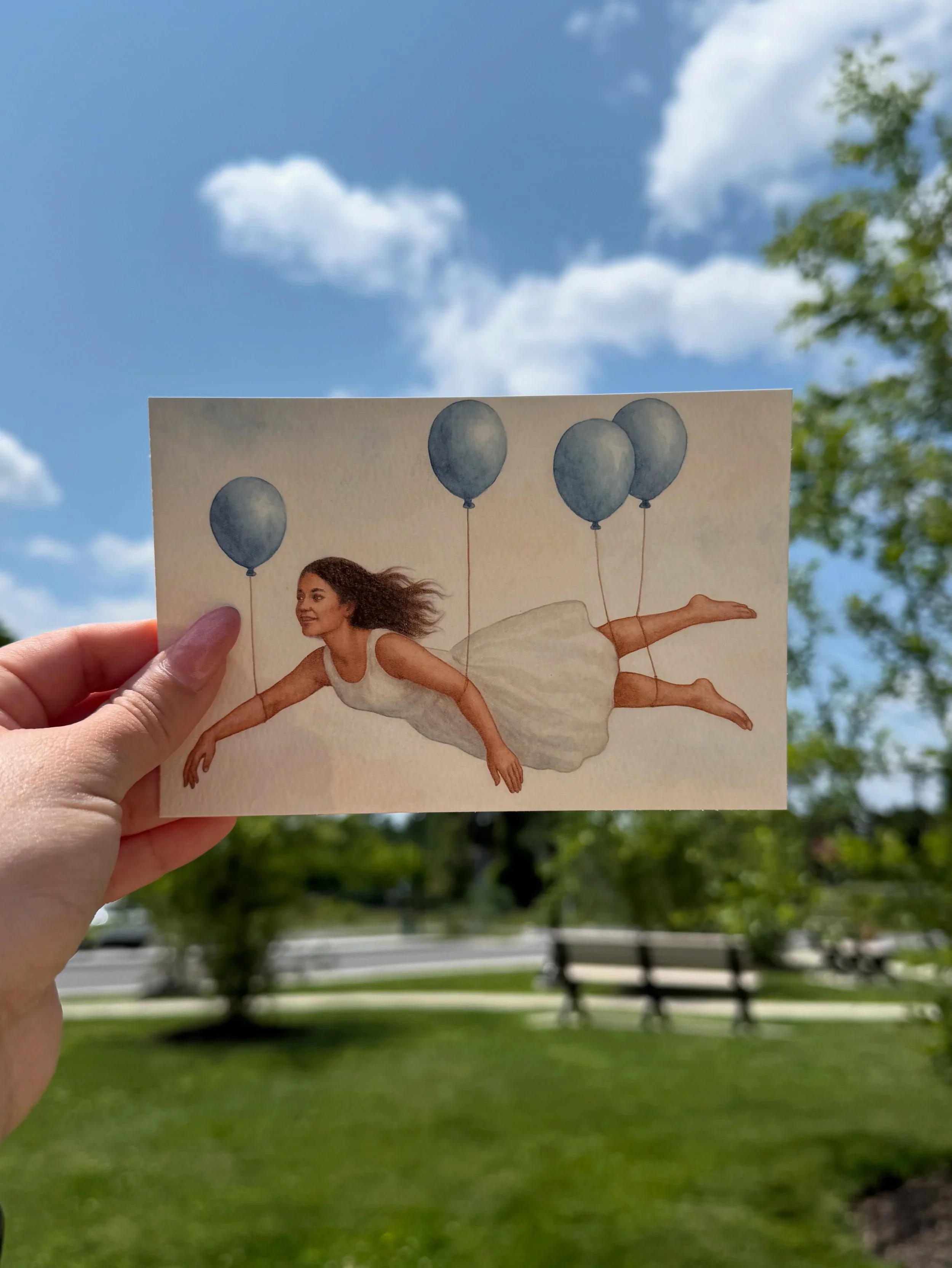 For the art exhibition Dreams: Postcards from the Soul, I submitted three dreams, one of which was my first lucid dream where I flew through the sky with blue balloons tied to my arms and legs. That moment of wonder sparked Dreamspired, a project where I collected and illustrated dreams and created a guide filled with dream-related resources and future dream inspired pieces.