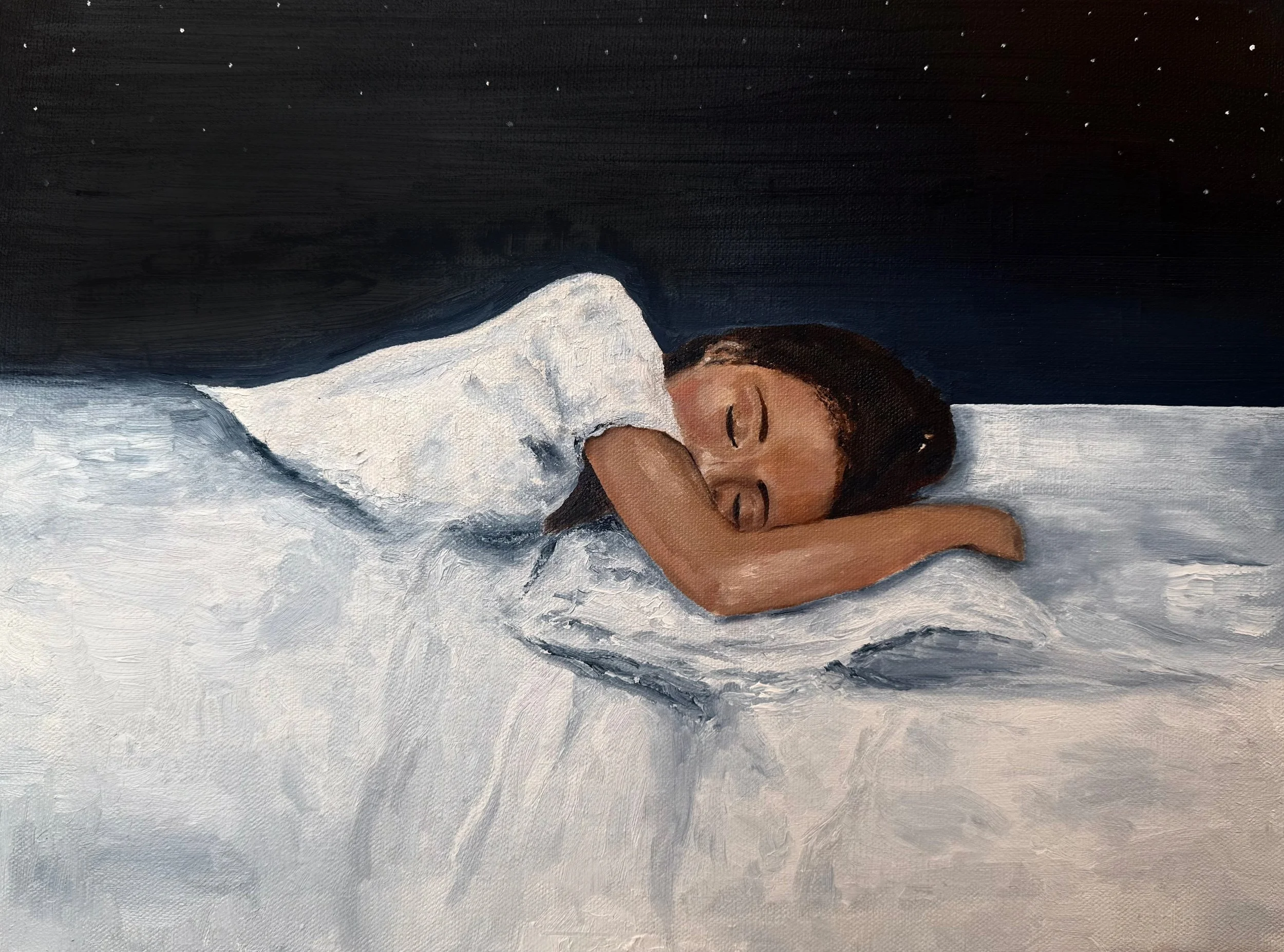 For my solo art exhibition, I wanted to focus on recreating fragments of my dreams/memories. Remnants explores the fleeting imagery that lingers between dreaming and waking. Each piece in the series is what I call a dreamscape, a visual fragment inspired by colors and textures that surfaced from the subconscious. Some works drift toward abstraction, others take the form of landscapes, and some become self-portraits, but all inhabit the same terrain.